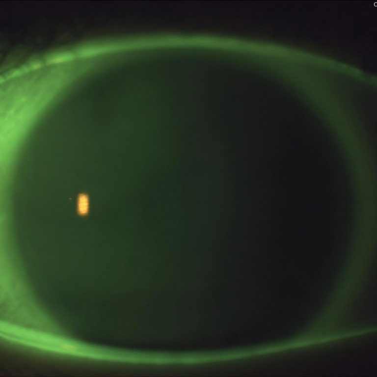 Zur Beurteilung des Tränenfilms färbe ich die Hornhaut und die Bindehaut sanft ein.